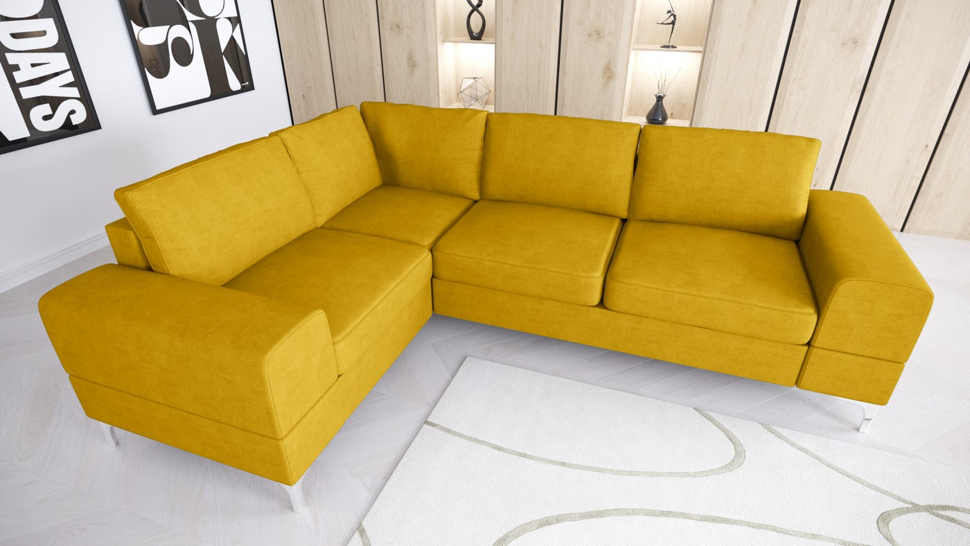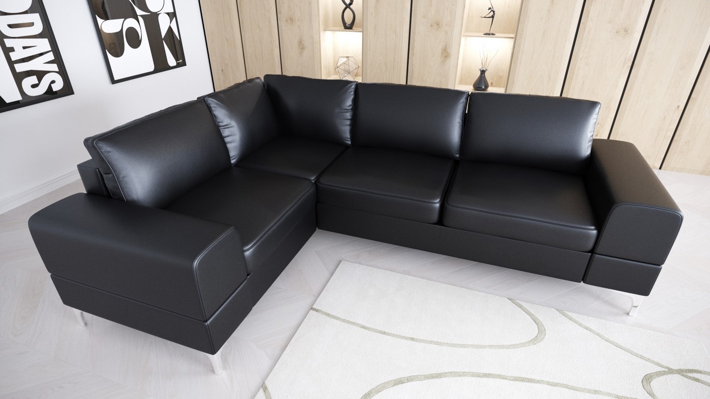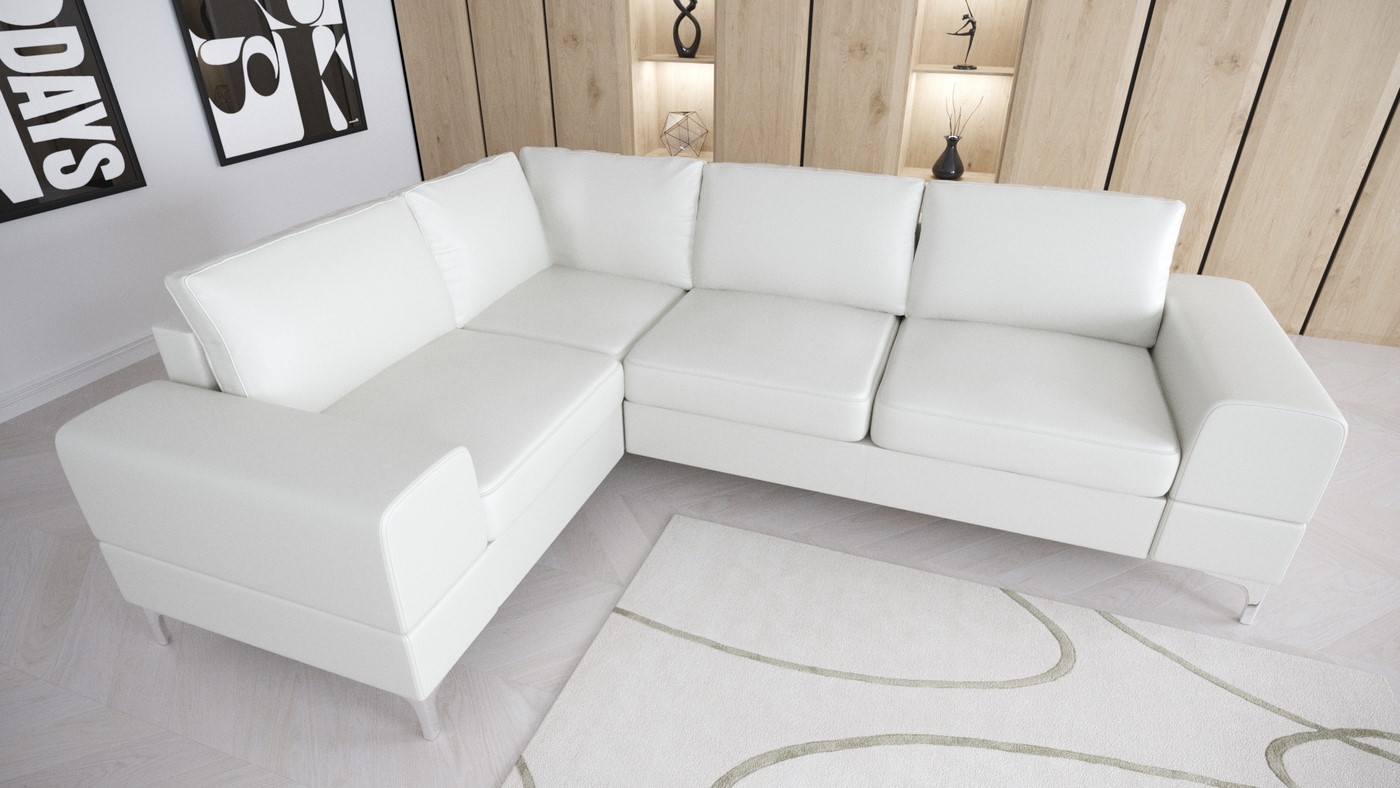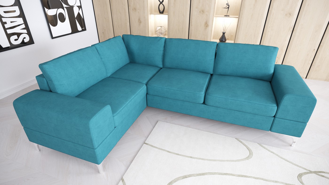 Komfortowe poduszki, podłokietniki, stabilna, silna konstrukcja unosząca się na wysokich 13 cm nóżkach.