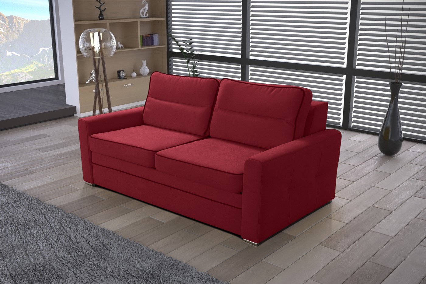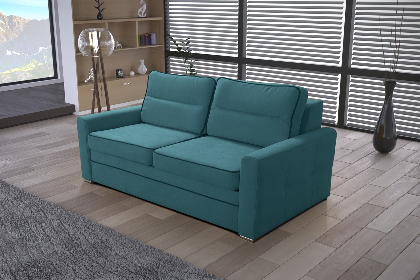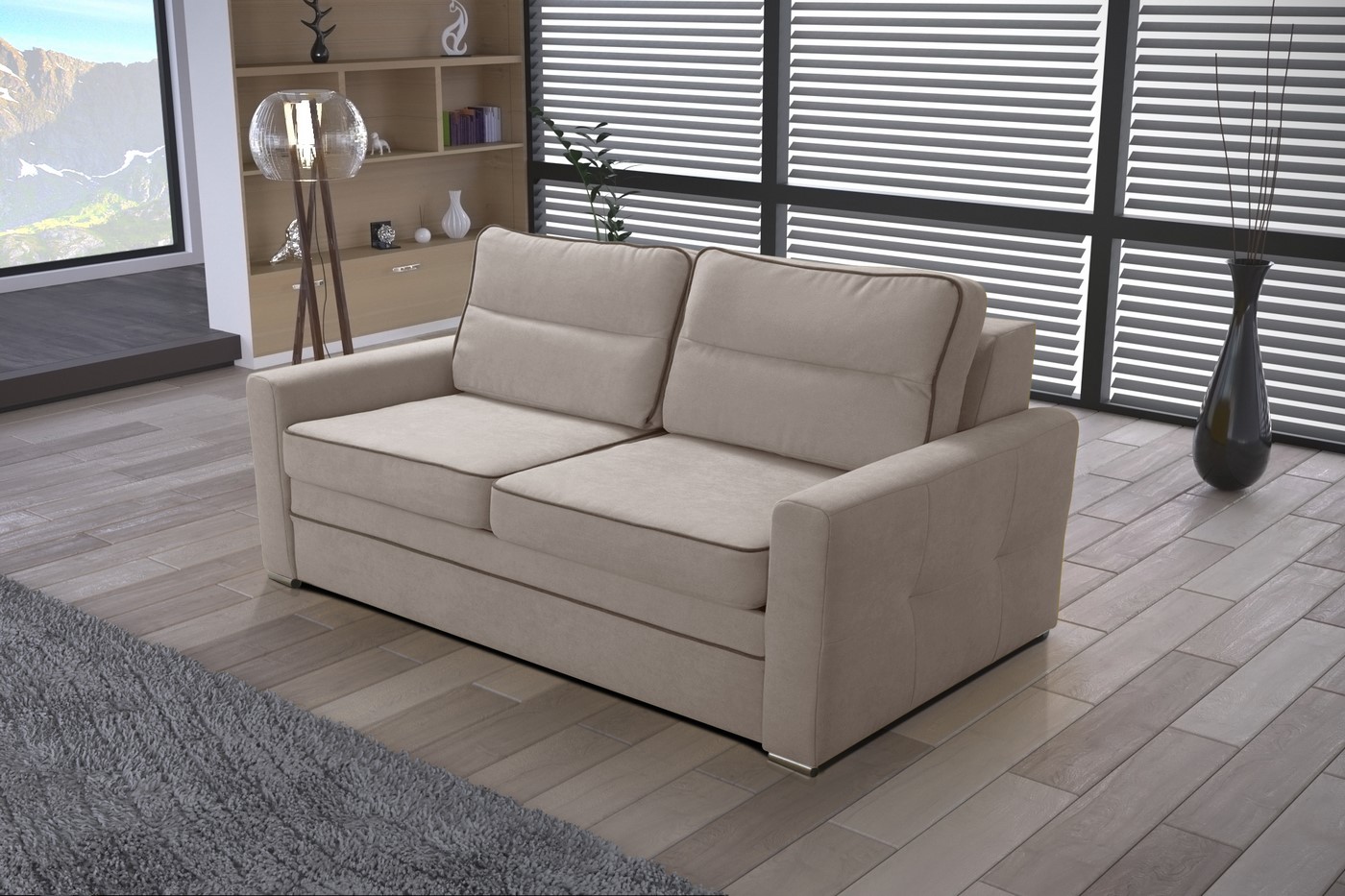 Sofa dwuosobowa została wyposażona w funkcję spania oraz pojemnik na pościel dzięki czemu zmienisz swój dzienny mebel w łóżko dla gości.